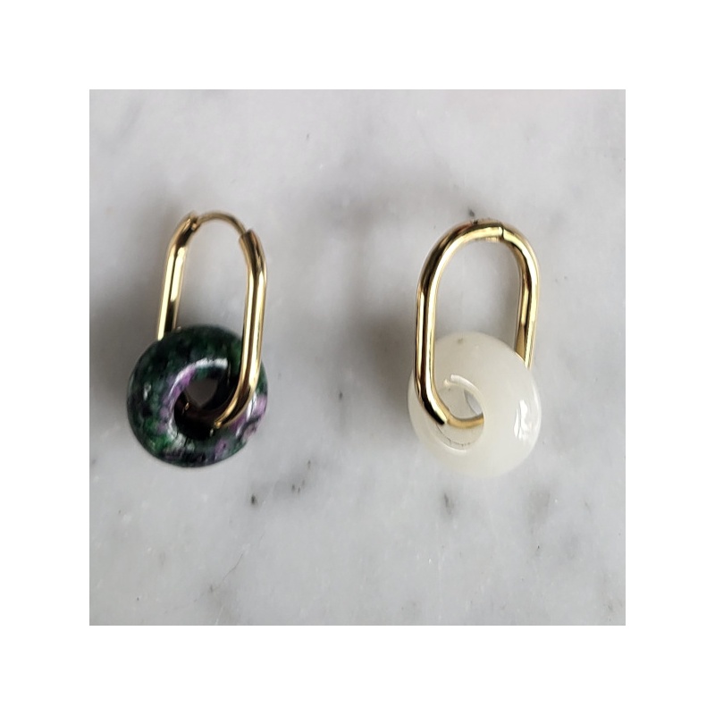 Notre nouveauté, la paire de boucles d'oreilles mix de doré et de résine, avec des breloques aux choix.
