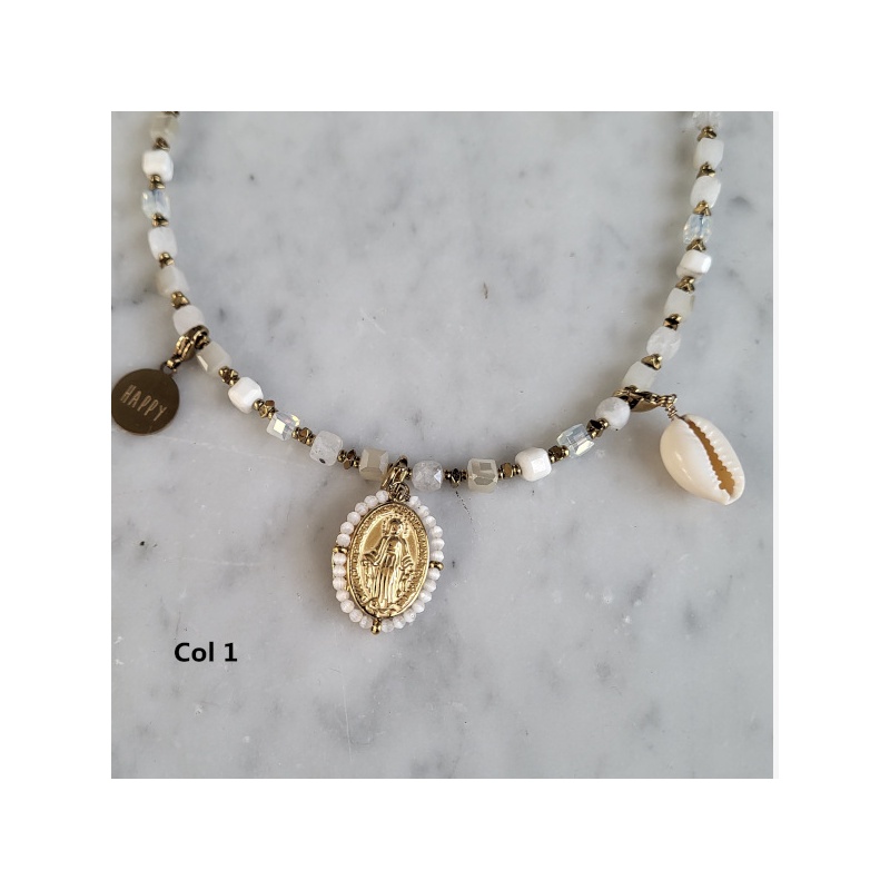 Plongez dans l’univers lumineux de notre collection “Trésors & Symboles”, une gamme de 13 colliers exclusifs alliant perles colorées et breloques dorées ou émaillées.