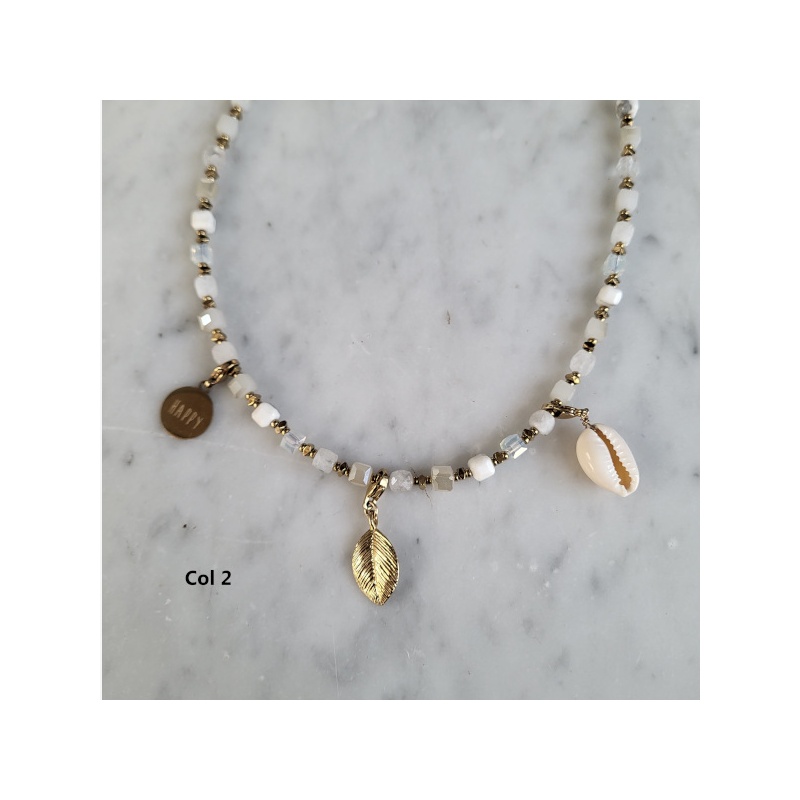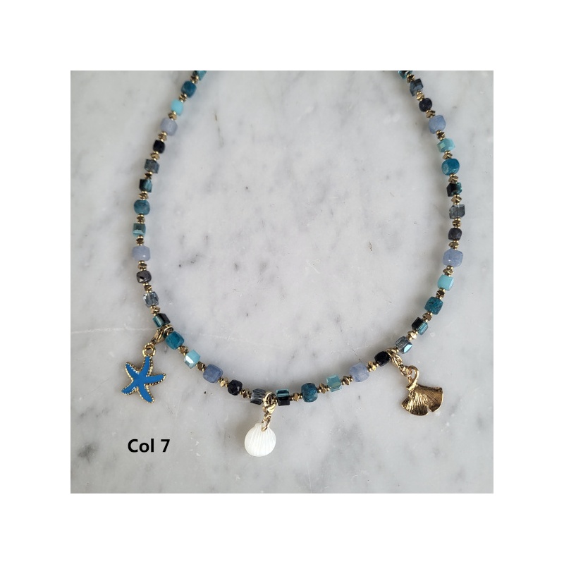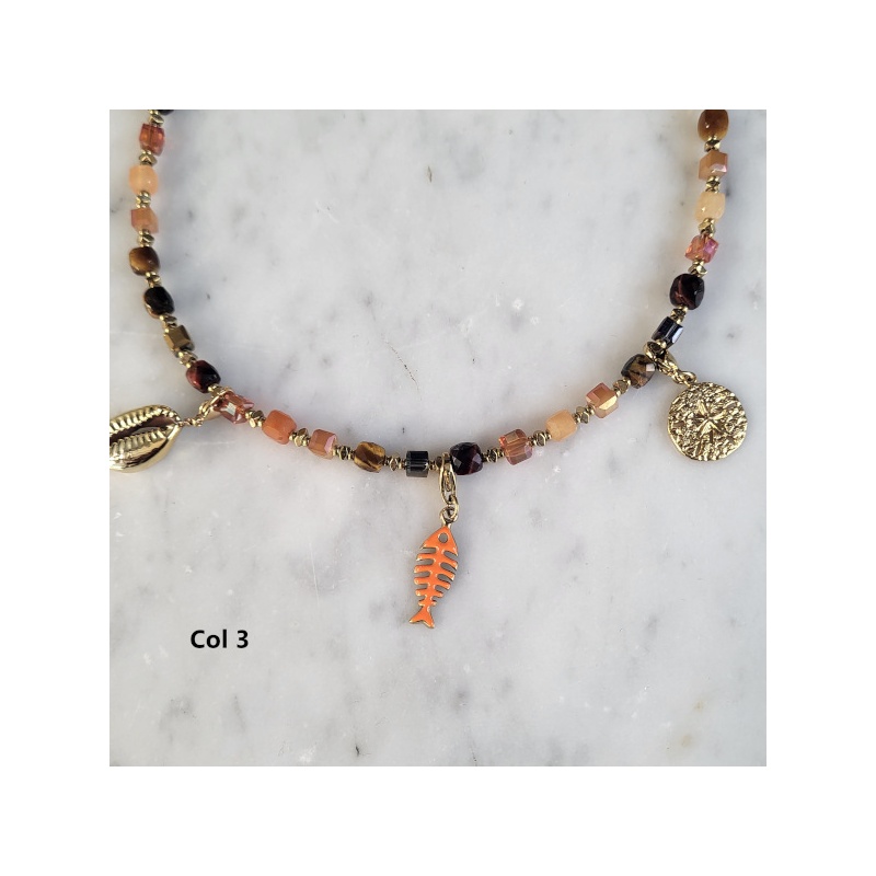 Choisissez votre collier breloques déjà composés, un collier en perles de couleurs, des breloques que nous avons choisis pour que votre collier soit harmonieux en couleur et équilibré!