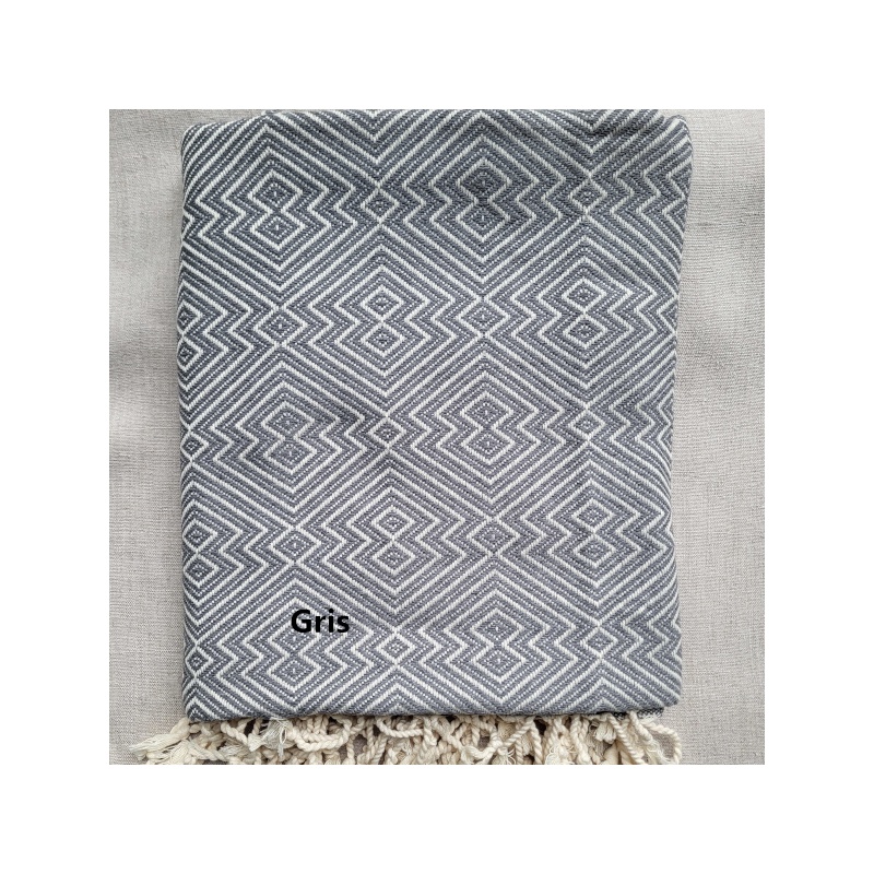 Ces foutas en tissage chevron sont unies avec 2 légers liserés blancs, ils sont proposés dans 4 coloris classiques : Gris foncé, gris moyen, rose et bleu. Ces foutas sont très douces et particulièrement agréables au toucher...