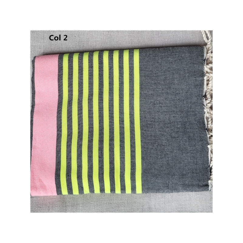 La fouta aussi appelée serviette de Hammam vient de Tunisie. cette gamme de foutas est colorée : elles sont rayées de 2 ou 3 couleurs.