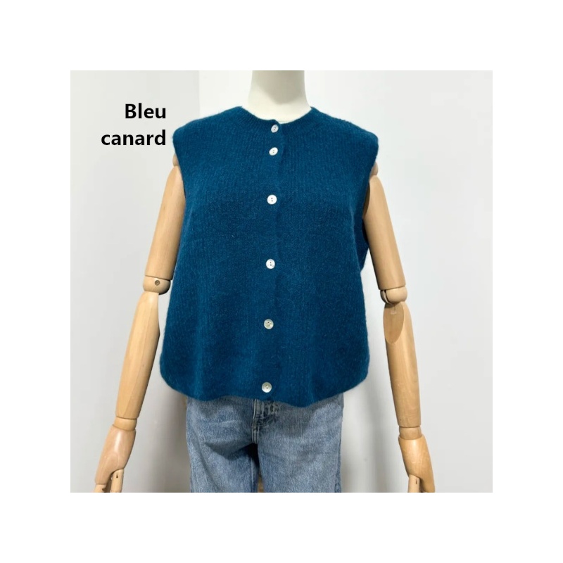 Gilet boutonné mohair SANS MANCHE ajouré